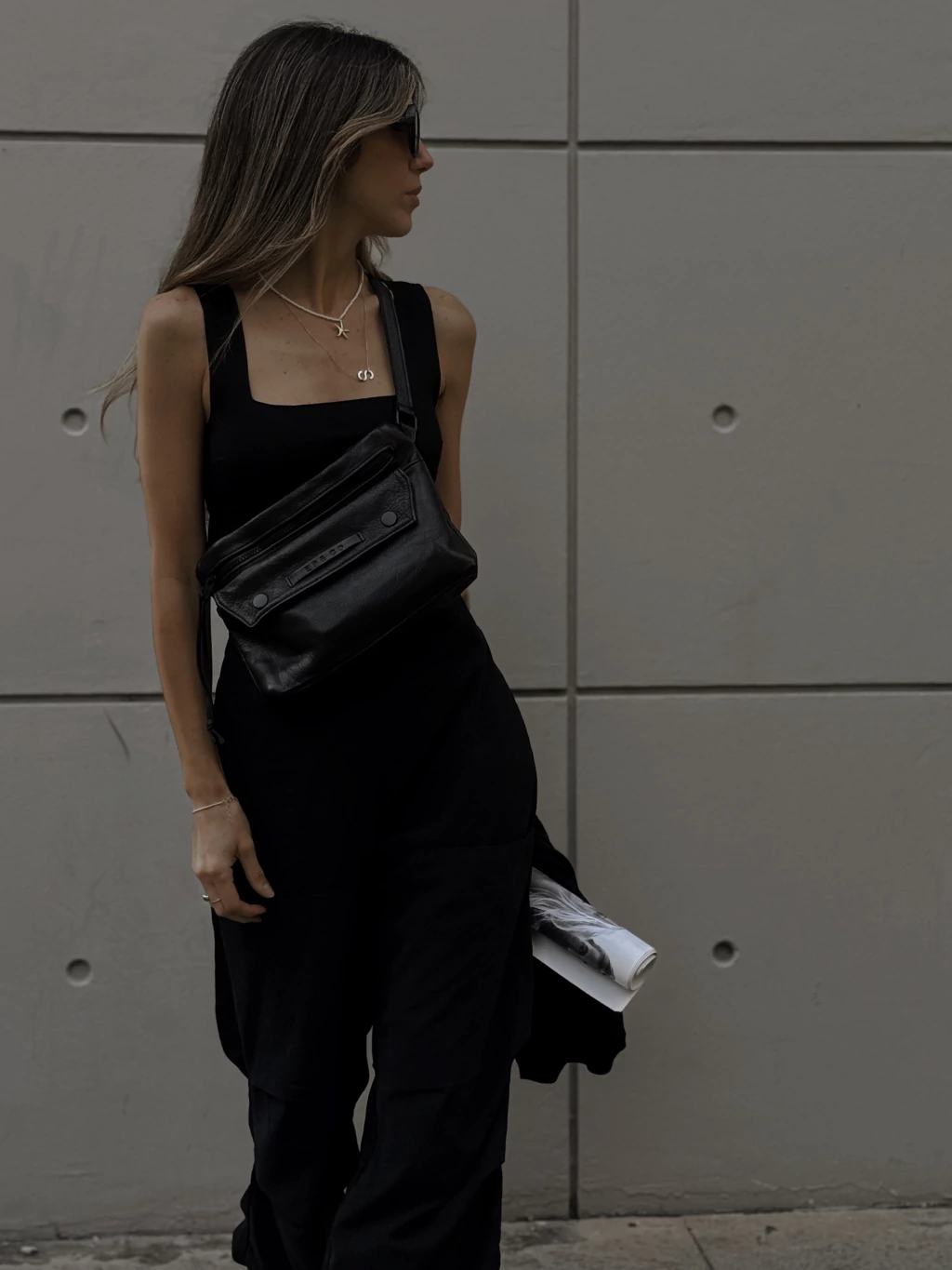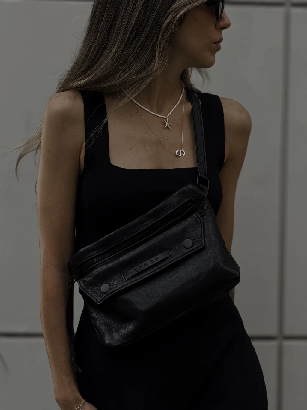 Cuero napado Negro, curtido de manera vegetal y teñido con pigmentos naturales.